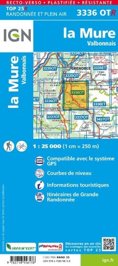 L'indispensable carte de randonnée IGN imprimée en recto-verso aux alentours de La Mure. A conserver dans son sac à dos.