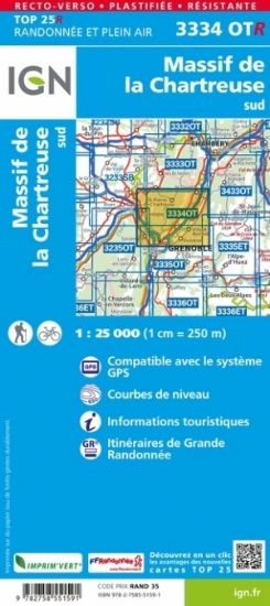 L'indispensable carte de randonnée IGN 3334OTR résistante aux alentours du Massif de la Chartreuse sud. A conserver dans son sac à dos.