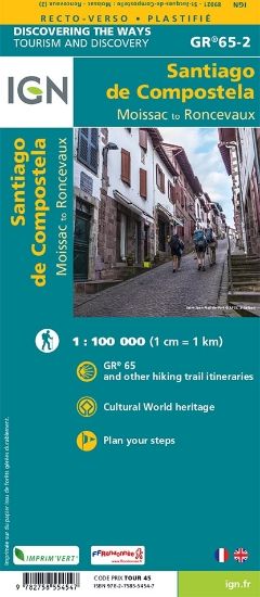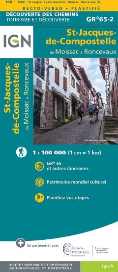St jacques de Compostelle :De Moissac à Roncevaux Pour continuer sur le GR®65 allant de Moissac à Roncevaux. Une carte pour découvrir ce chemin exceptionnel, réalisée en partenariat avec ACIR, l’agence des chemins de st jacques de compostelle. Complétez le parcours avec les autres cartes du chemin et découvrez la nouvelle série de cartes IGN consacrée aux chemins mythiques.