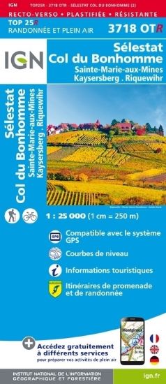 L'indispensable carte de randonnée IGN 3718OTR imprimée en recto-verso aux alentours de Colmar/Kaysersberg. A conserver dans son sac à dos.