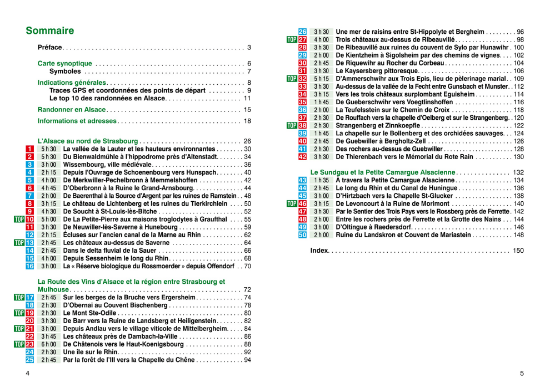 Les brefs descriptifs au début fournissent des renseignements sur la difficulté, les points de restauration et les curiosités. De nombreuses photos en couleurs permettent de découvrir les multiples facettes de l'Alsace.