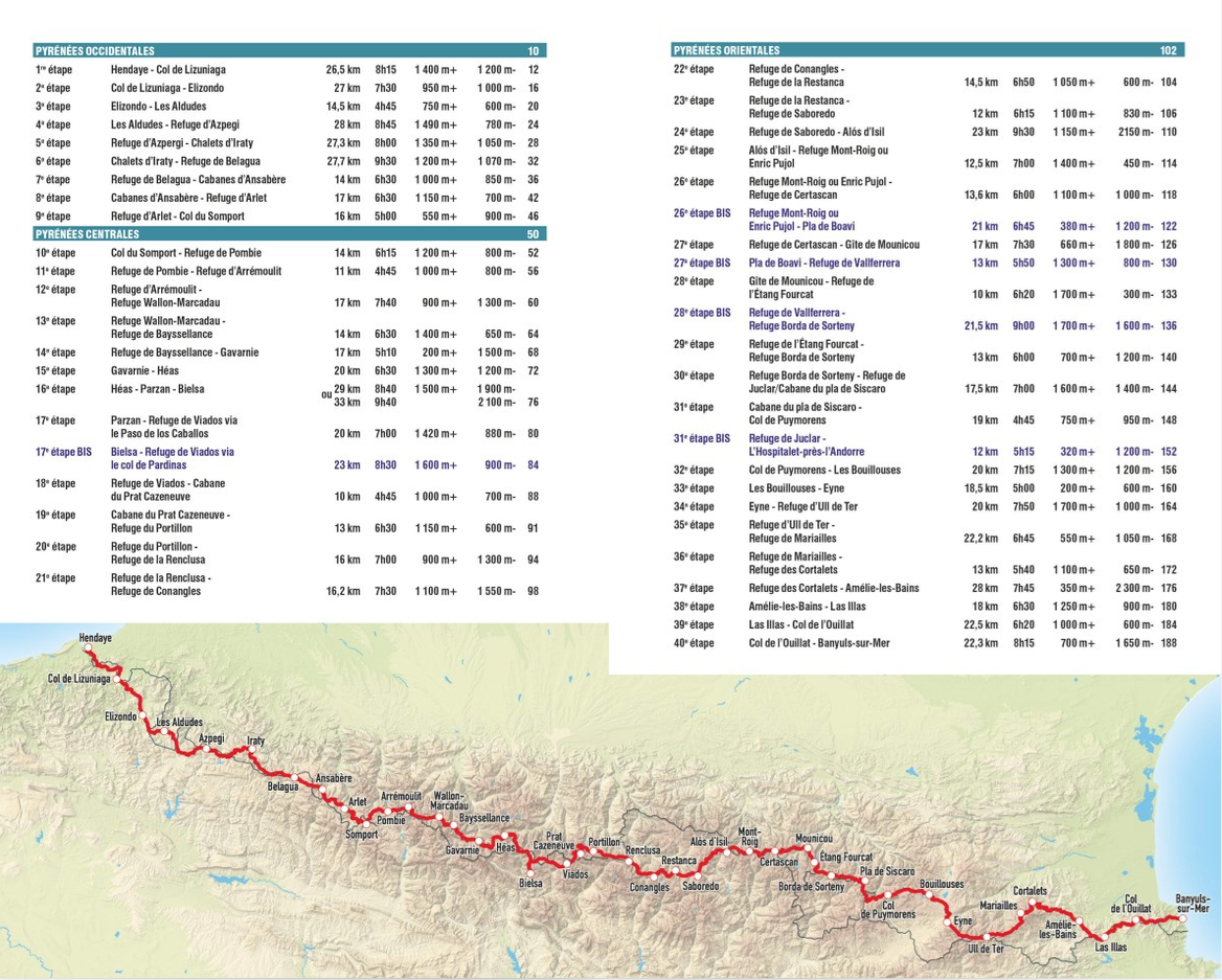 Des rives de l’océan Atlantique à celles de la mer Méditerranée, parcourez 40 étapes qui vous conduiront au cœur du Pays basque verdoyant, du massif karstique du pic d’Anie, des mythiques cirques de Troumouse et Gavarnie, jusqu’aux sommets emblématiques comme l’Aneto ou le Canigou. Une aventure qui mêle immersion dans la nature, effort physique et émerveillement.