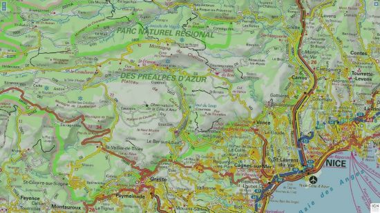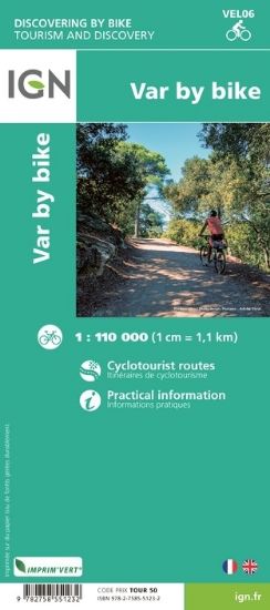 Une carte à l’échelle du 1 : 110 000 (1 cm = 1,1 km) réalisée en partenariat avec la FFvélo pour découvrir le Var à vélo.