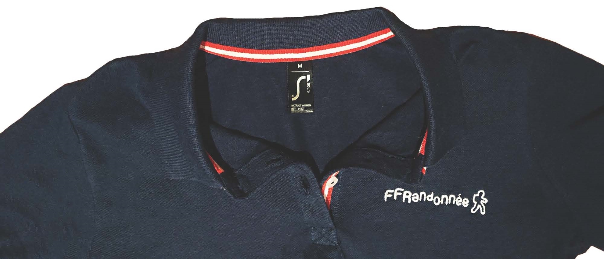 - Sigle FFRandonnée brodé blanc sur la poitrine