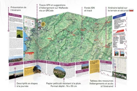 - La topocarte ???, en revanche, propose un parcours préétabli avec un découpage journalier, pour une itinérance fluide et accessible.