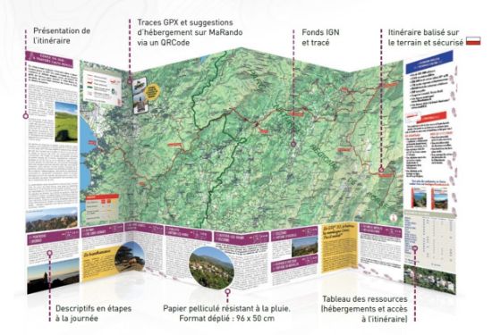 - La topocarte ???, en revanche, propose un parcours préétabli avec un découpage journalier, pour une itinérance fluide et accessible.
