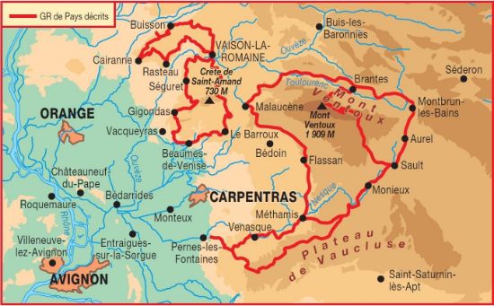 Les vignobles des Côtes-du-Rhône sont présents partout, sous l'oeil vigilant du Ventoux et entourant "le feu d'artifice des dentelles", comme l'exprimait le géographe Raoul Blanchard.