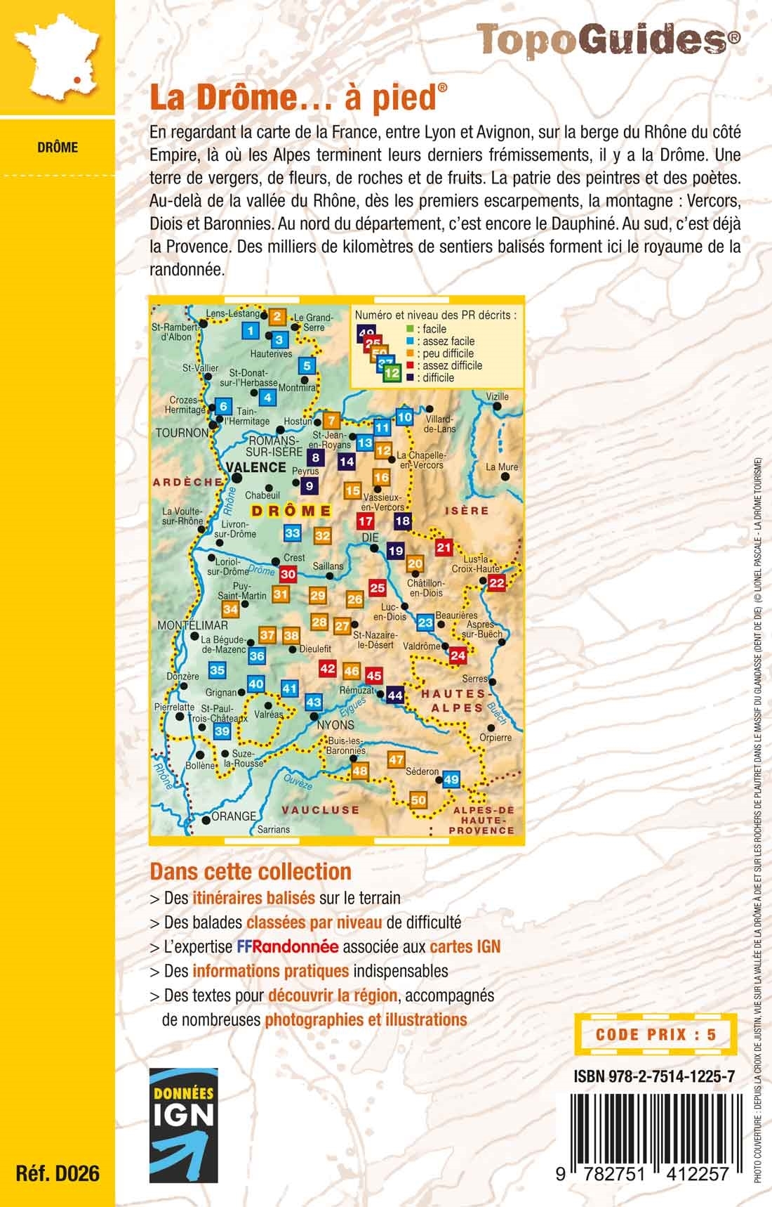 En regardant la carte de la France, entre Lyon et Avignon, sur la berge du Rhône du côté Empire, là où les Alpes terminent leurs derniers frémissements, il y a la Drôme. Une terre de vergers, de fleurs, de roches et de fruits. La patrie des peintres et des poètes. Au delà de la vallée du Rhône, dès les premiers escarpements, la montagne : Vercors, Diois et Baronnies. Au nord du département, c'est encore le Dauphiné. Au sud, c'est déjà la Provence. Des milliers de kilomètres de sentiers balisés forment ici le royaume de la randonnée.