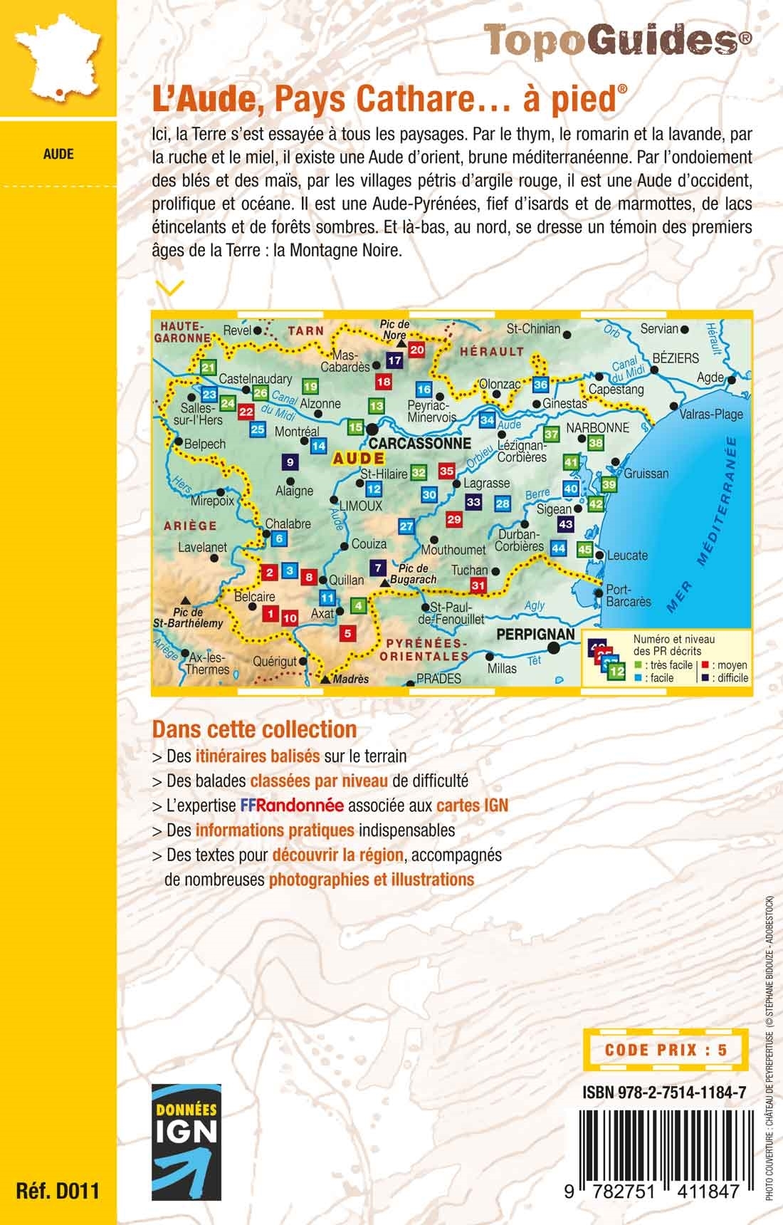 Ici, la terre s'est essayée à tous les paysages. Il existe une Aude d'orient, chaude et méditerranéenne, dont les sentiers exhalent des parfums de thym, de romarin ou de lavande. Il est aussi une Aude d'occident, prolifique et océane, où les sentiers épousent l'ondoiement des blés et maïs, traversent des villages d'argile rouge et guident le randonneur vers le Lauragais dont le cassoulet fait la renommée. Enfin, pour les marcheurs sportifs, il est une Aude-Pyrénées, fief d'isards et de marmottes, de lacs étincelants et de forêts sombres. Et là-bas, au nord, se dresse un témoin des premiers âges de la Terre : la Montagne Noire.
