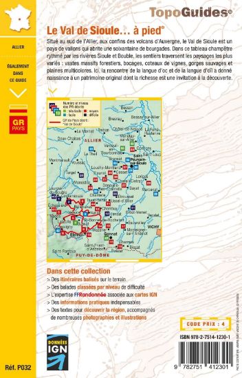 Depuis les contreforts du Massif central, entre Vichy et Montluçon, le Val de Sioule offre un tableau champêtre, baigné par les rivières Sioule et Bouble. Les sentiers guident les pas du randonneur vers des paysages variés et authentiques : vastes massifs forestiers, bocages, gorges sauvages et plaines multicolores. Avant de gagner les rives de l'Allier, il pourra s'arrêter à Saint-Pourçain et y goûter son célèbre vin.