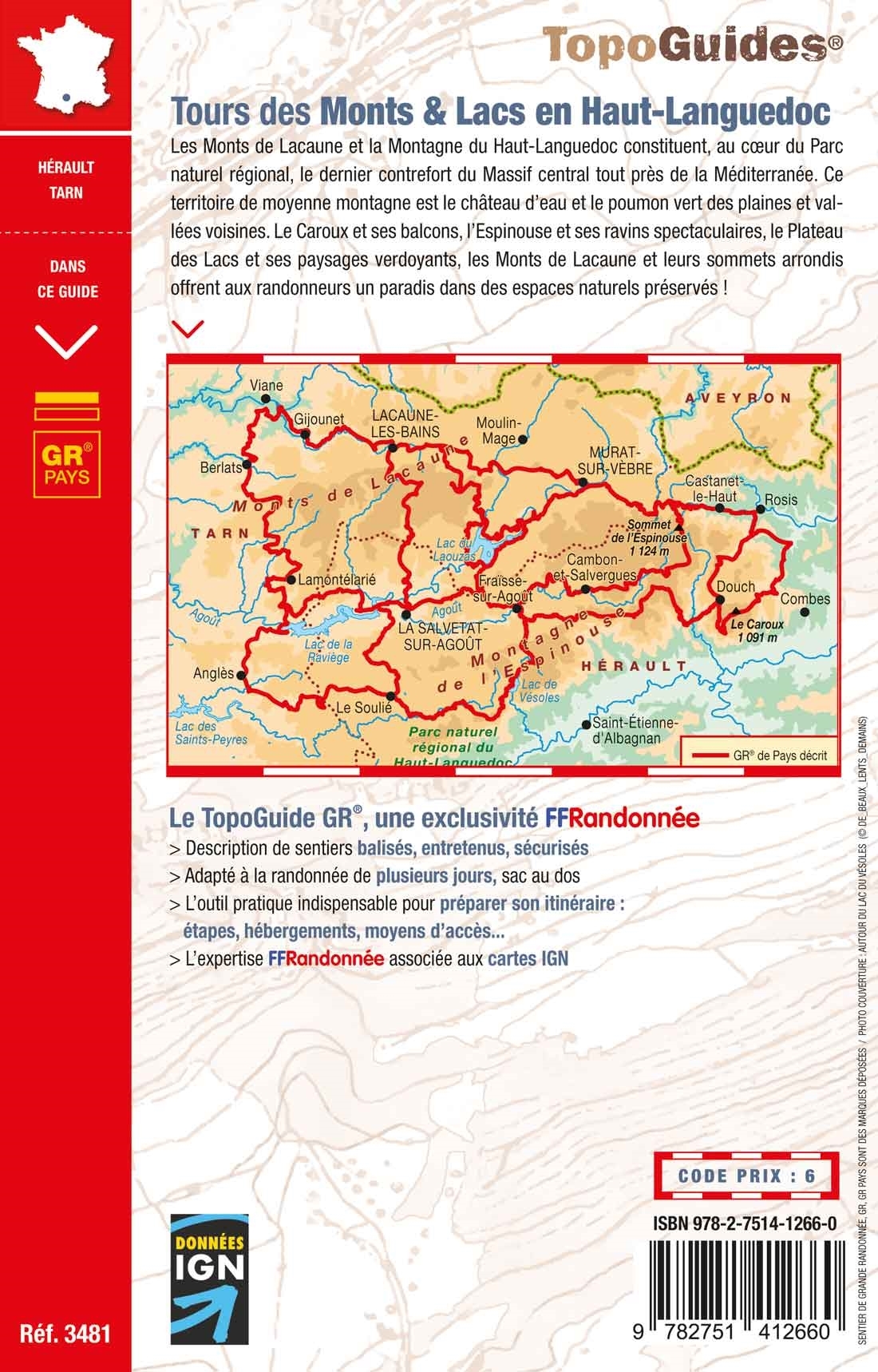 Au cœur du Parc naturel régional du Haut-Languedoc et, comme lui, à cheval sur deux départements, l’Hérault et le Tarn, la Montagne du Haut-Languedoc est située sur la ligne de partage des eaux entre Méditerranée et océan Atlantique. A ce titre, elle bénéficie d’un climat relativement humide qui en fait à la fois le château d’eau et le poumon vert des plaines et vallées voisines. Or des fleurs de genêts en fin de printemps, rose carminé des bruyères l’été, vert profond des forêts, quelle que soit la saison, la Montagne haut-languedocienne vous comblera de ses charmes le long des sentiers serpentant à travers les massifs du Caroux et de l’Espinousse ou au cœur des vallées de l’Agout et de l’Arn. Le patrimoine local est précieux et ne manquera pas de vous étonner : statues-menhirs remontant au quatrième millénaire avant Jésus Christ, églises et chapelles témoins, croix jalonnant les chemins... Enfin, vos haltes seront l’occasion de profiter de deux autres richesses locales, loin d’être anecdotiques : la gastronomie avec des festins de truites, d’écrevisses, de gibier, de charcuterie et de champignons et le contact avec des habitants hauts en couleurs qui savent faire partager l’amour de leur pays.